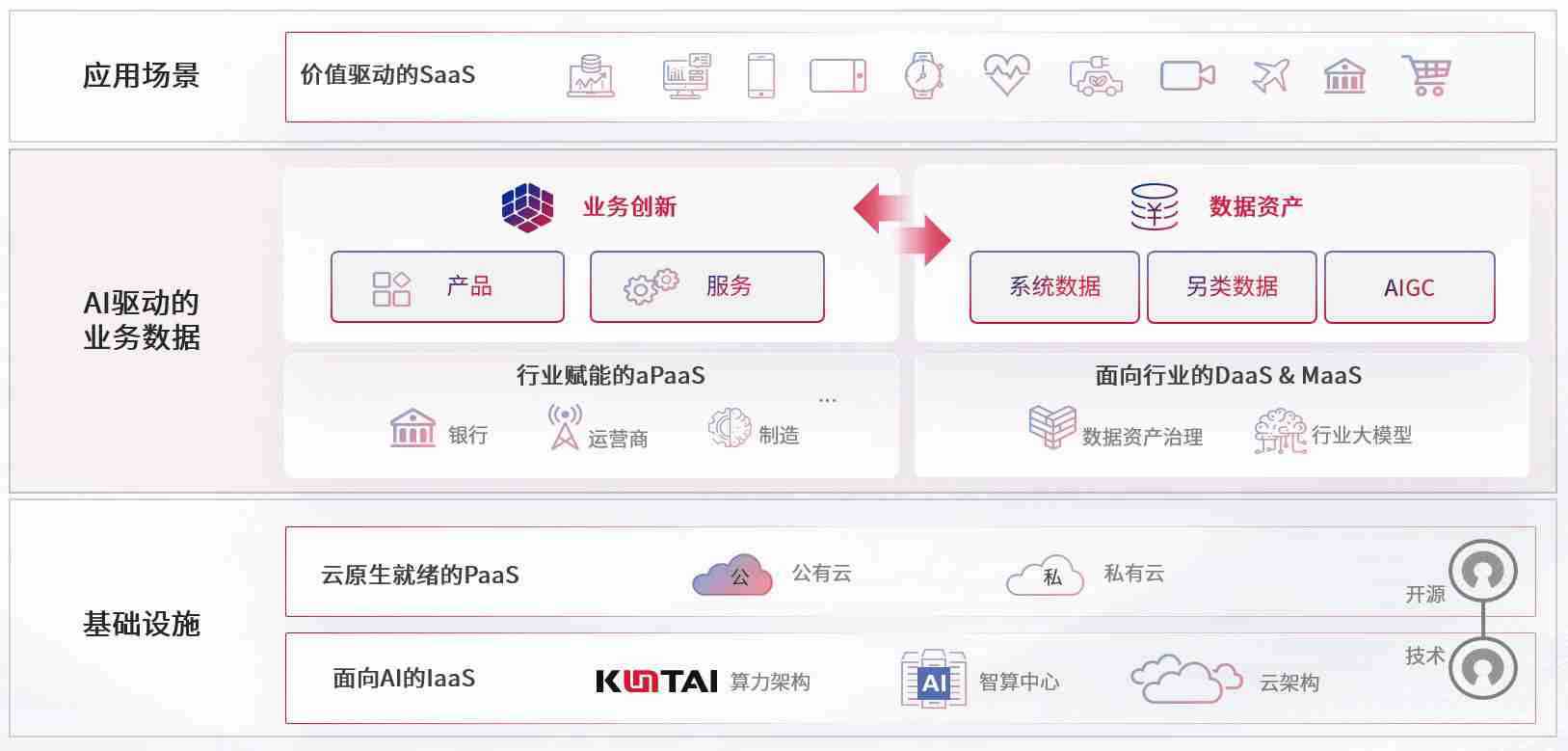 数字时代,,,围绕企业数字化转型的关键要素,,,z6mg人生就是博数码开创性的提出数云融合战略和技术体系框架,,着力在云原生、、、、数字原生、、、AI原生和信创产业上架构产品和服务能力,,,,为处在不同数字化转型阶段的快消零售、、、、汽车、、金融、、医疗、、、政企、、、、教育、、运营商等行业客户提供泛在的敏捷IT能力和融合的数据驱动能力,,构建跨界融合创新的数字业务场景和新业务模式,,,,助力企业级客户建立面向未来的核心能力和竞争优势,,全面推动社会的数字化、、、、智能化转型升级。。。。